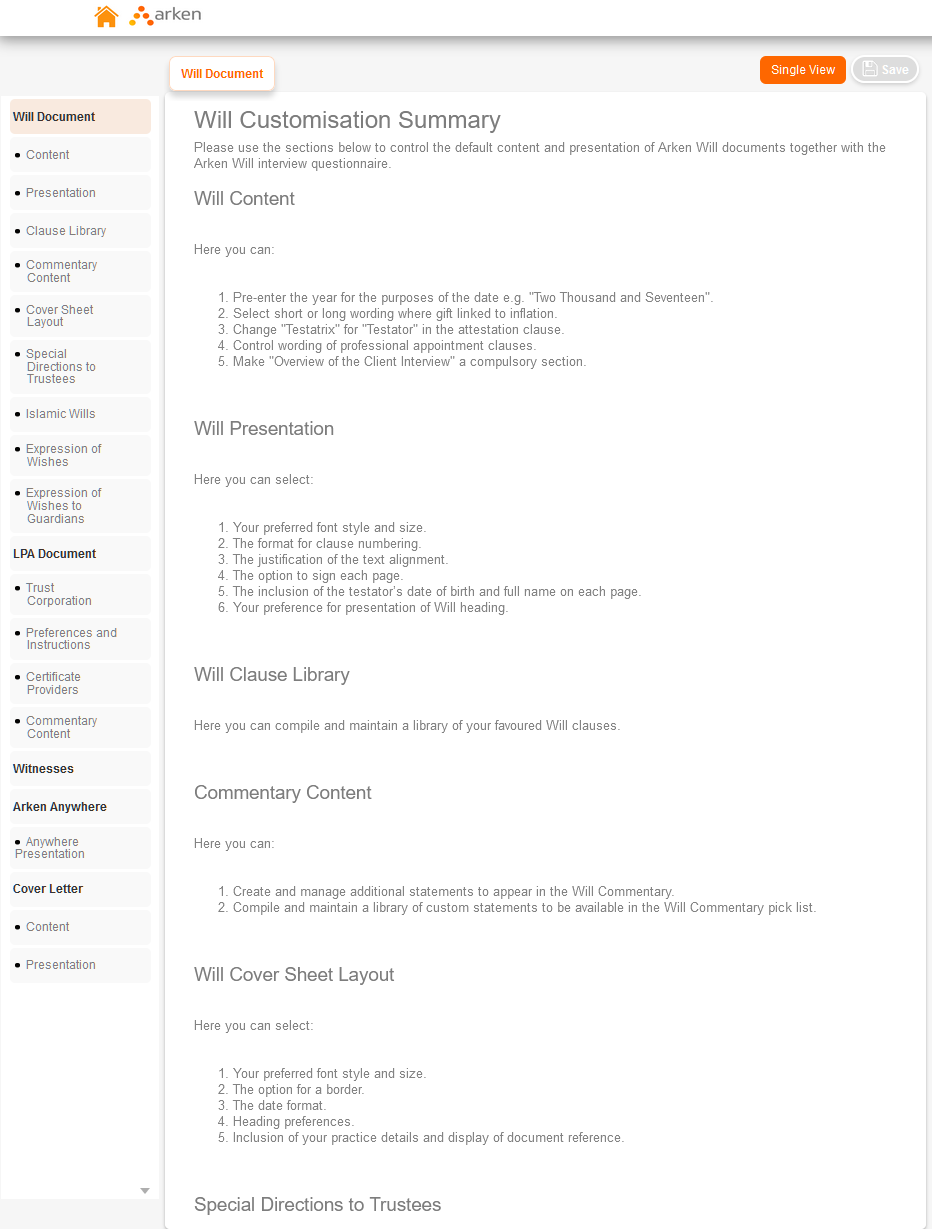 This article will briefly go through the tabs to the left of Arken. On entering a questionnaire, you should see a list of tabs on the left. Document Details - This tab displays information about the document, including the clients name, address and ...
