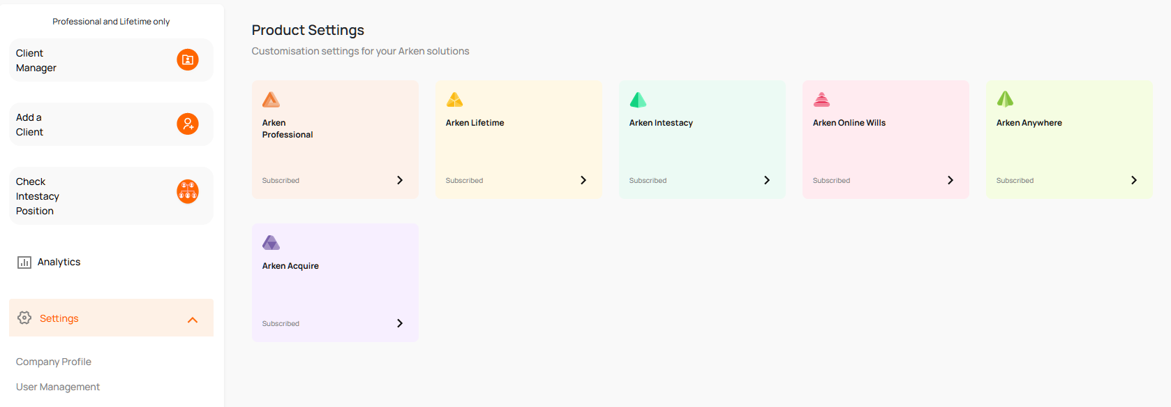 3. Select Arken Professional from the Products listed on the right.