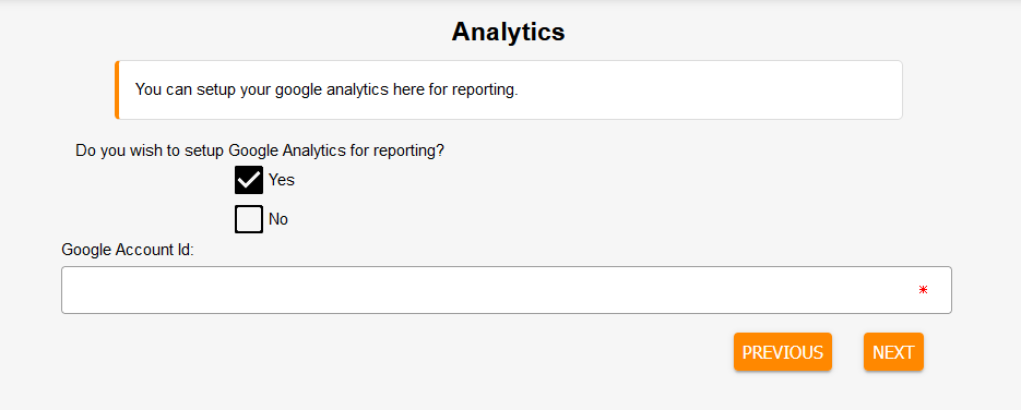 If you use Google Analytics, you can use this section to intergrate it with your service. Click 'Yes' then enter your Google Account ID.