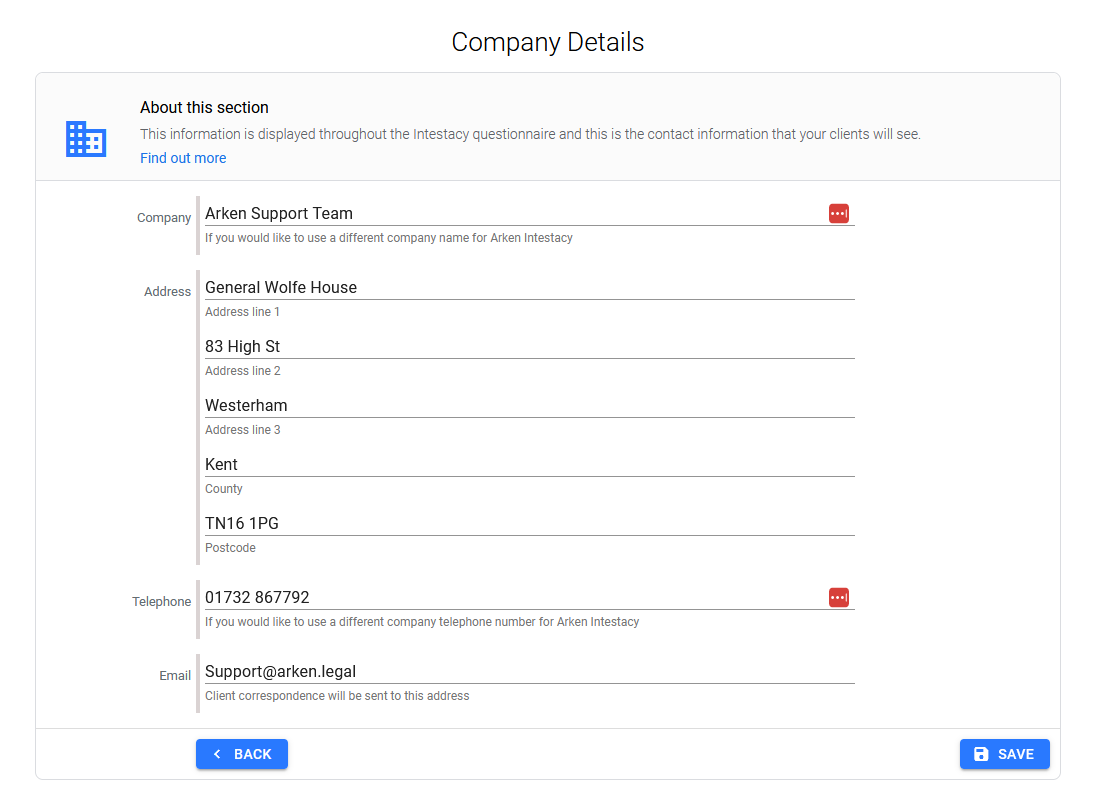 Intestacy emails will be sent to this address e.g. when a client