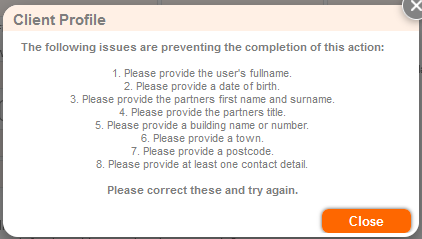 If you are presented with this then close the dialogue box and complete the missing client details.