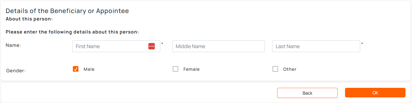 - Enter the names of the relevant beneficiary of appointee.