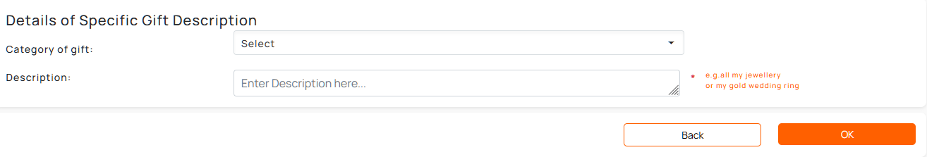 2. Enter the description of the gift. Please ensure that you include 'my' in the description and the gifts can be clearly identified.