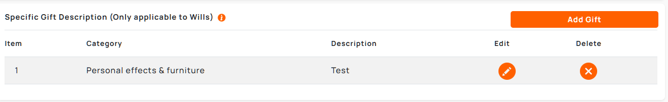 1. Go to the Data Entry Area page and find the gift in the table of Specific Assets.