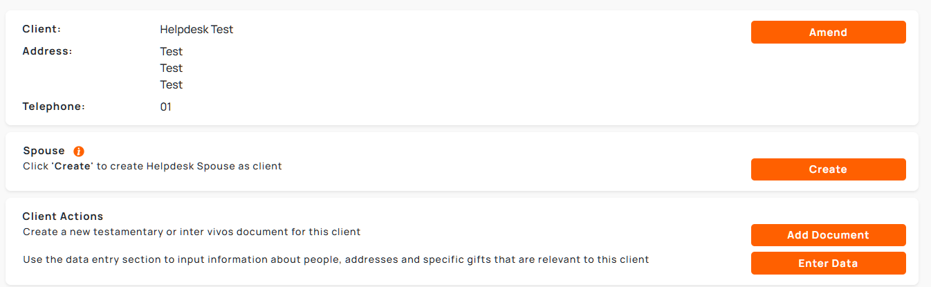 1. To create a new client record for a spouse, search for the original client and click the 'Amend' button.