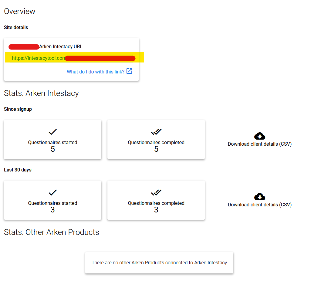 This link is for you to give out to your clients. When they click it they will be taken to the Homepage of your Intestacy Tool.