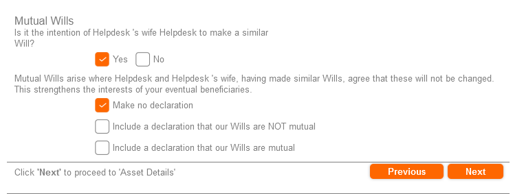 Selecting Mutual Wills will give you some new options at the bottom of the page. Here you can decide to make a few declaration about mutual Wills: