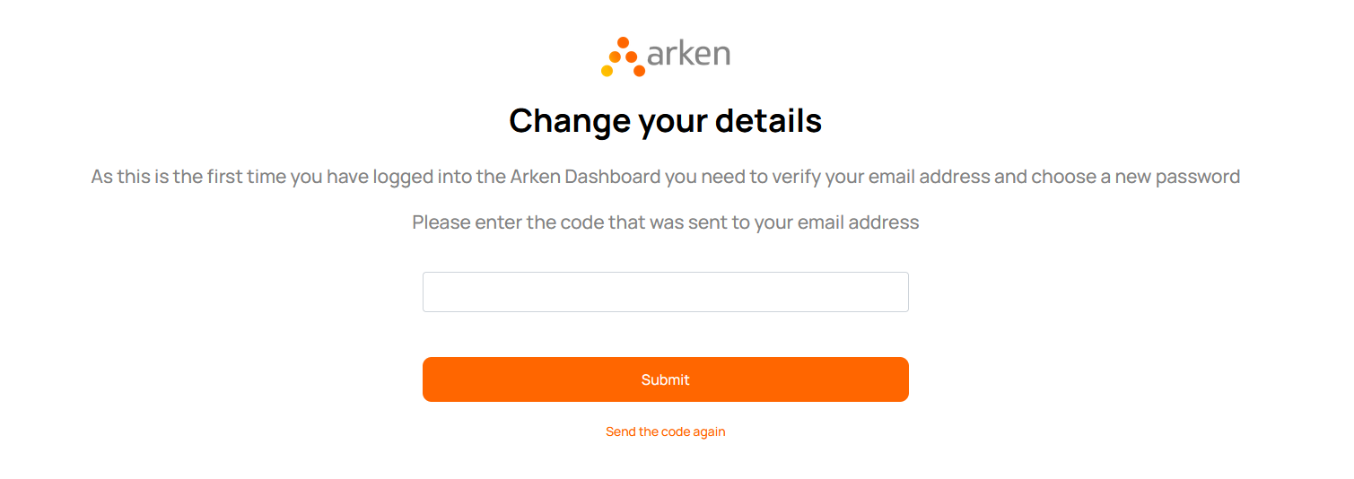 Once you have verified your account, it will ask you to change the password, please change this to proceed to the Arken Dashboard.