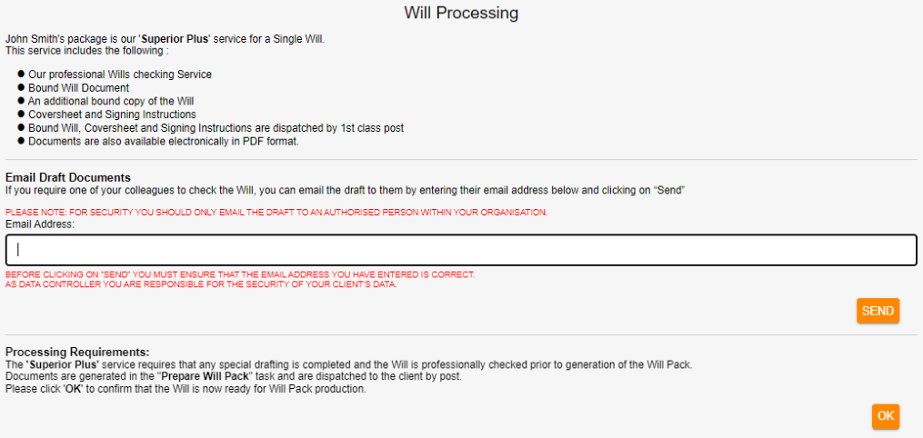 No further progression is necessary for a Premier Service Will as clients download their documents online.