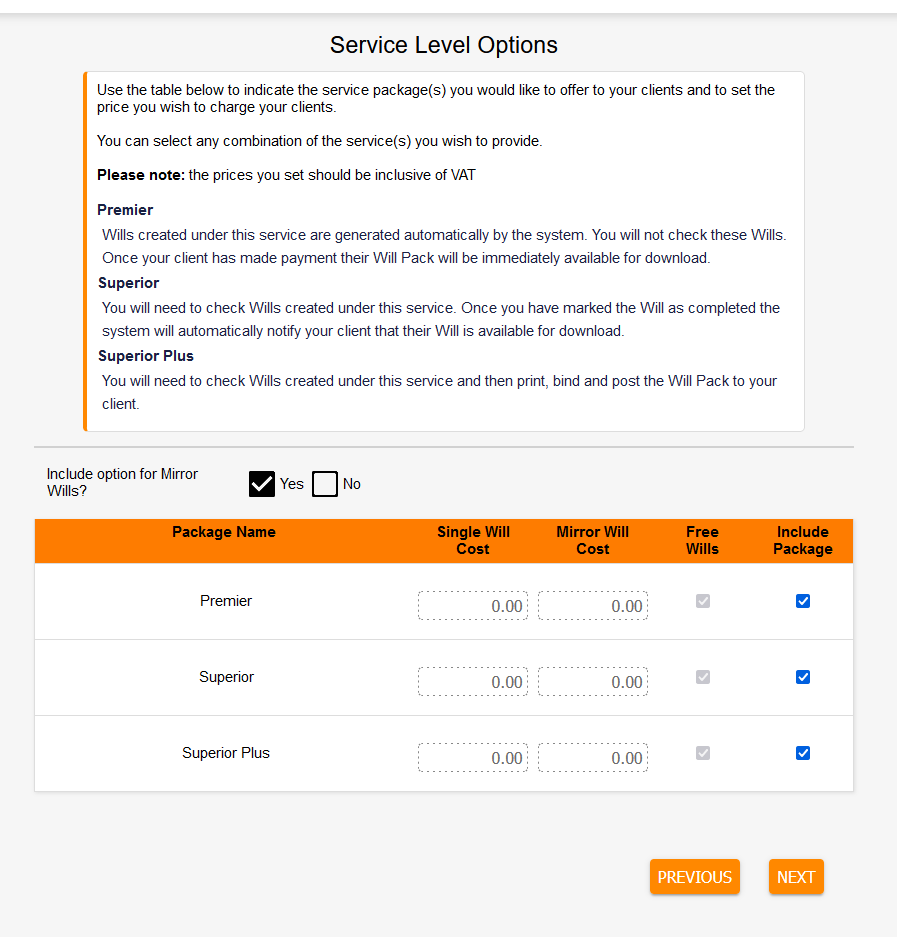 - Premier - Wills created under this service are generated automaically by the system. You will not check these Wills. Once your client has made payment their Will Pack will be immediately available for download.