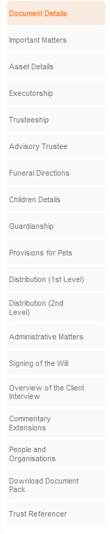 Trusteeship - This tab will allow you to elect seperate trustees. It will function similarly to the Executorship tab.